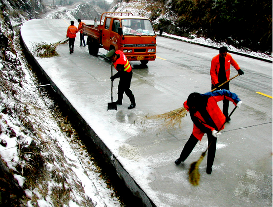 二是主动与气象部门联系,及时、准确跟踪掌握天气动态,加强粗砂、碎石、除雪剂等防冻防滑物资和设备储备,加强公路巡查,对受低温雨雪凝冻的路段、桥梁等进行防滑除险,及时设置安全警示标志,并积极配合当地公安交警部门做好交通管制,消除安全隐患。